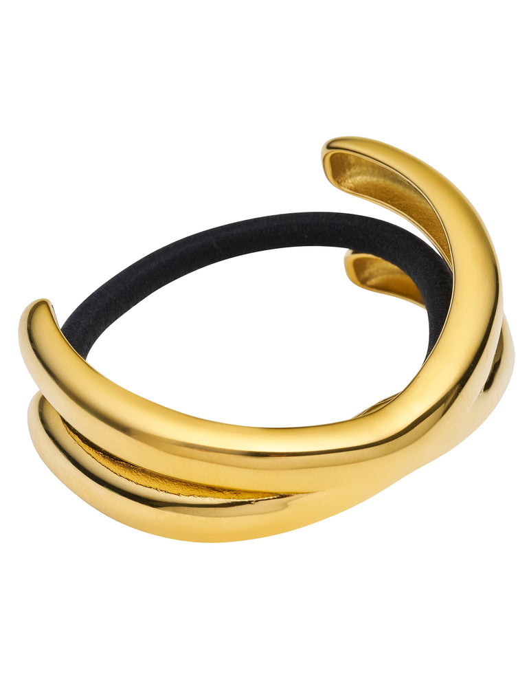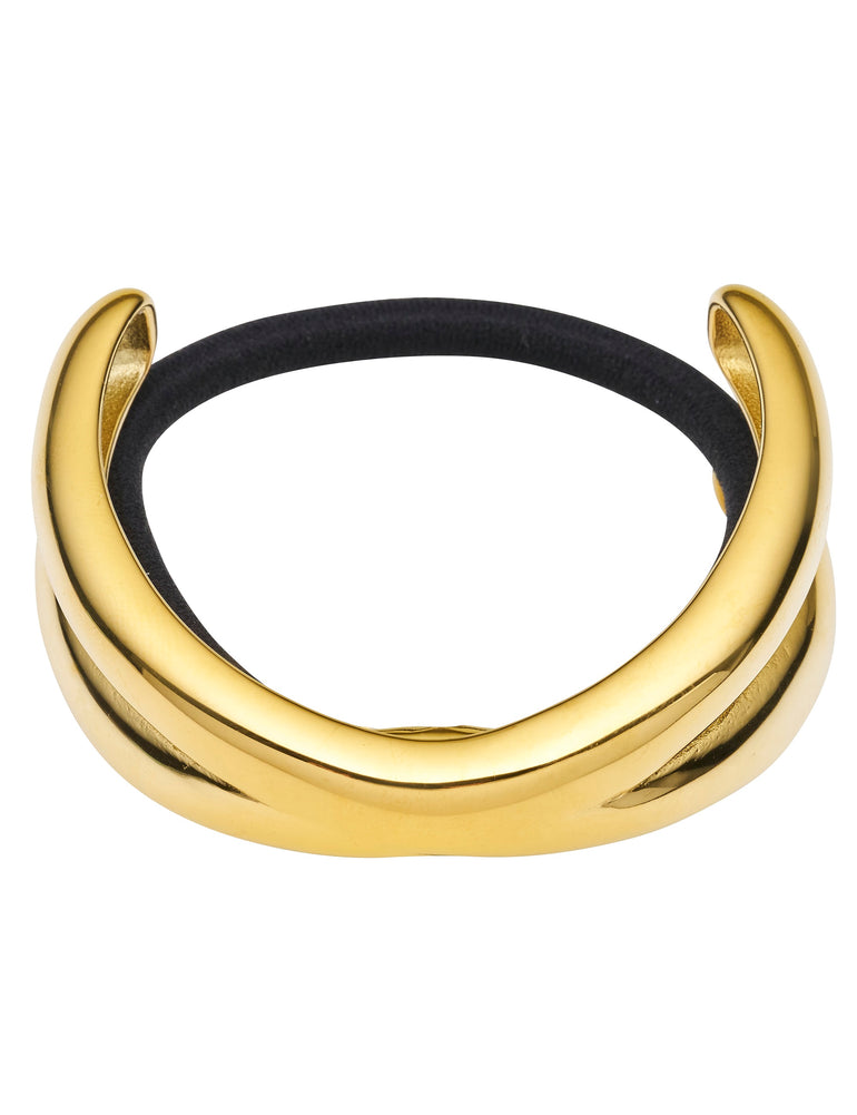 Bring a polished finish to sleek ponytails, elaborate braids or chic buns with the Cross Bar Curve Metal Hair Tie from Amelie. This eye-catching hair tie features a crossed-bar design in bright gold-coloured plating, perfect for adding style and shine to every look.