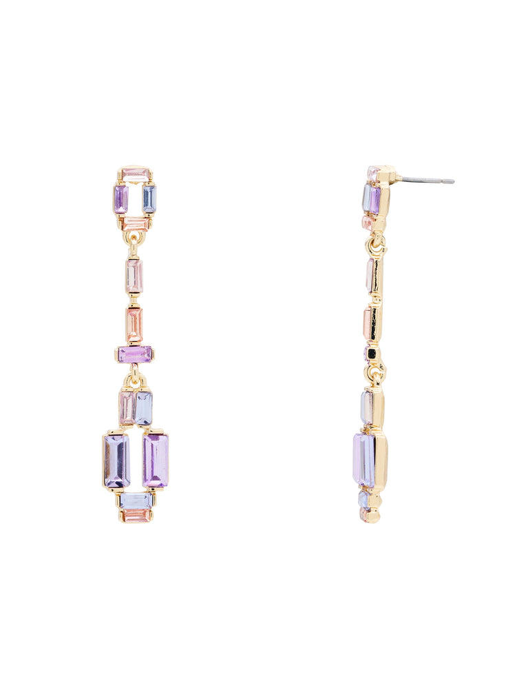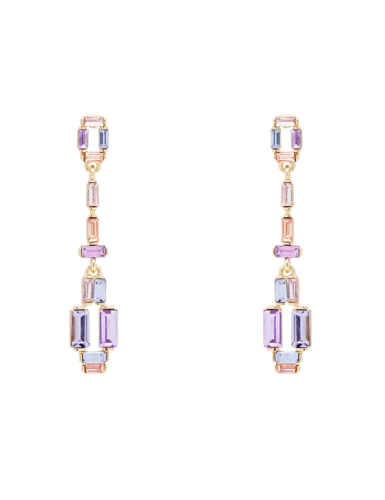 These modern, drop earrings feature a medley of faceted stones that will add a feminine touch to any outfit. The Medley Earrings are an eye-catching piece to complete any outfit with colourful sparkle in beautiful lilac tones, perfect for pairing with cocktail dresses and formal gowns, or for adding vibrant character to your everyday style.