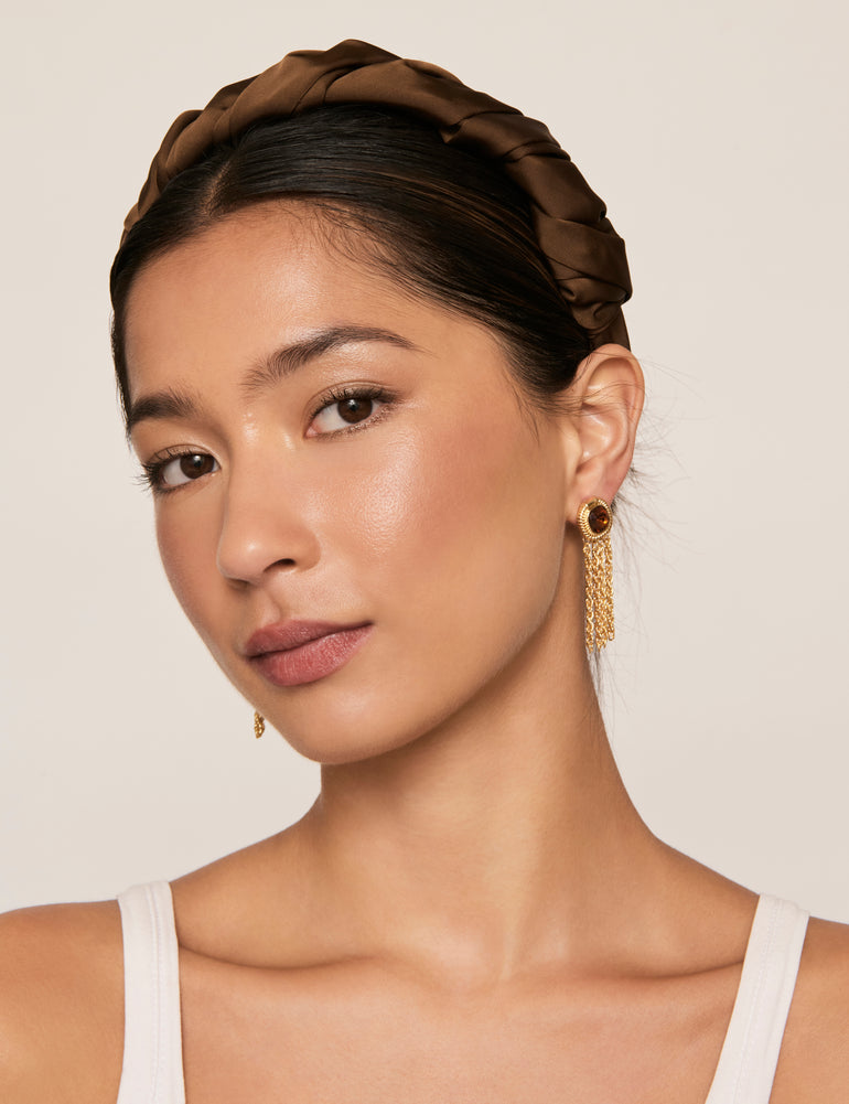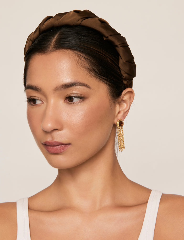 Choose understated elegance with the gorgeous Amelie Silk Twist Headband. This simple yet beautiful headband features ruched fabric in rich chocolate brown, perfect for bringing a touch of romantic style to all your favourite looks.