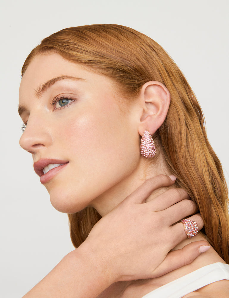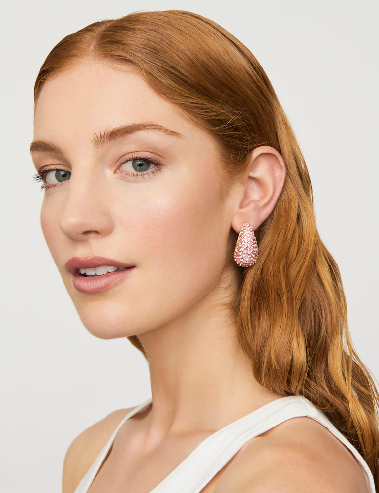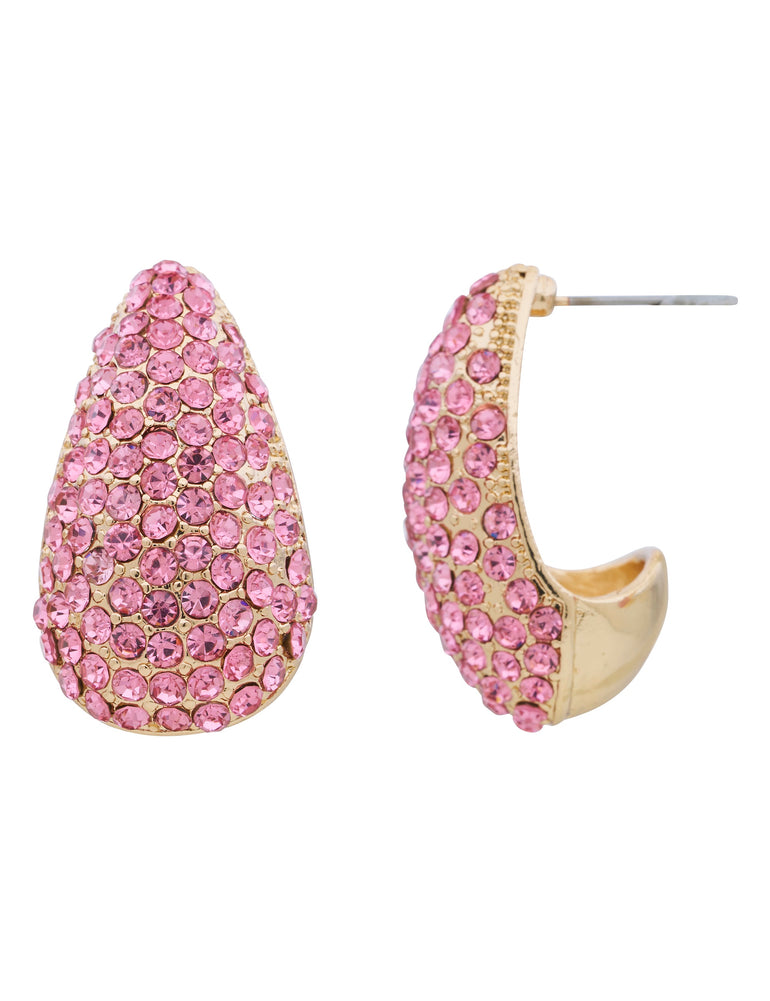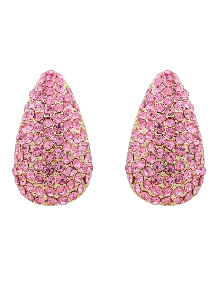 Turn up the sparkle with the gorgeous Supernova Drop Earrings. These teardrop-shaped earrings feature bright gold-coloured plating with fine sparkling stone detailing in beautiful pink, perfect for dressing up day or evening looks.