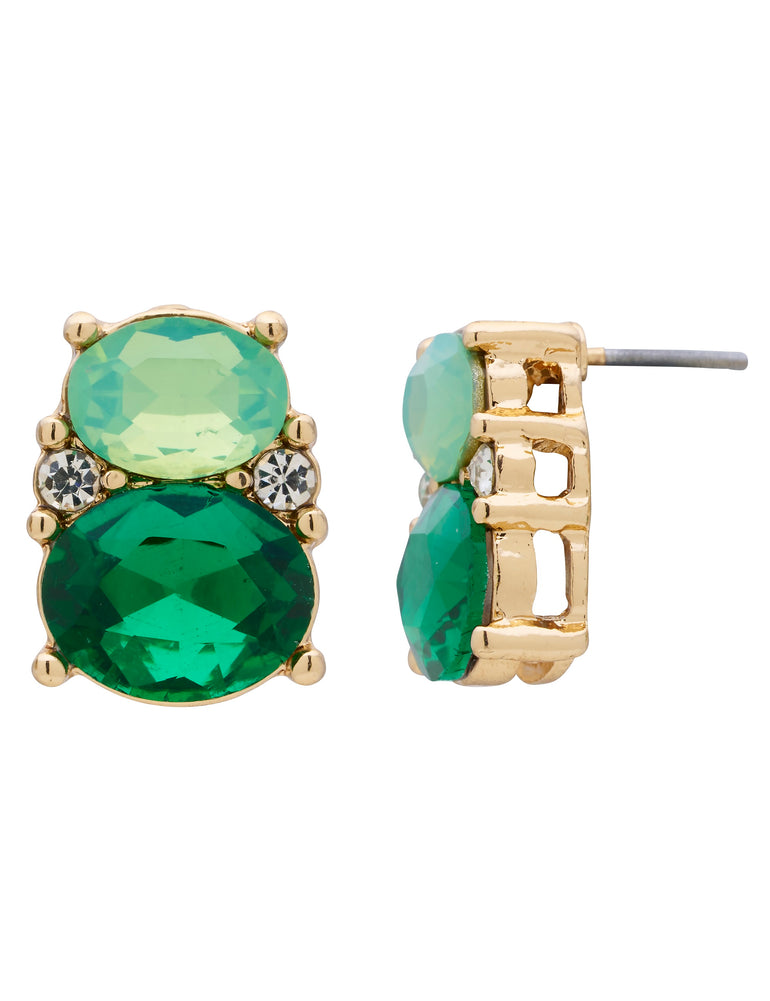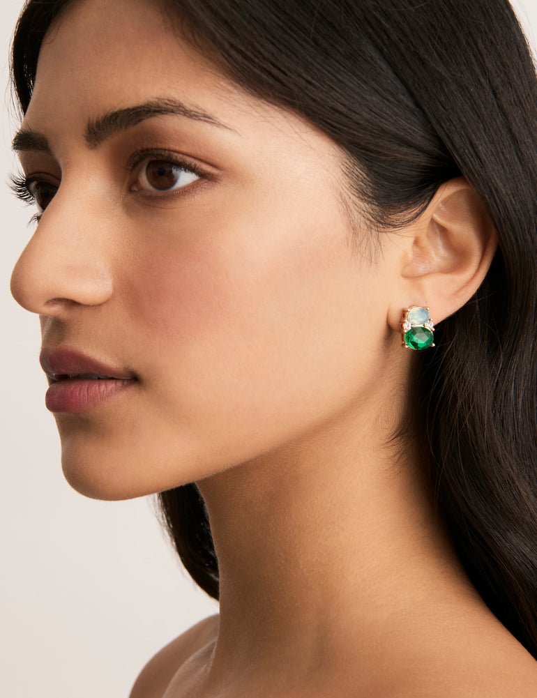 In bold emerald green, the Pastille Stud Earrings from Amelie are perfect for adding gorgeous colour to any outfit. These dainty yet eye-catching earrings feature faceted stones in gorgeous green with fine stone accents for a stunning touch of sparkle.