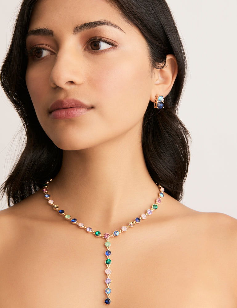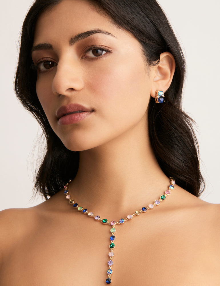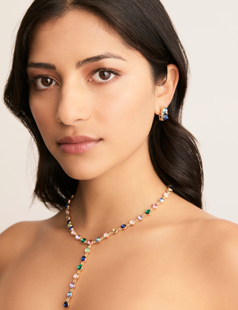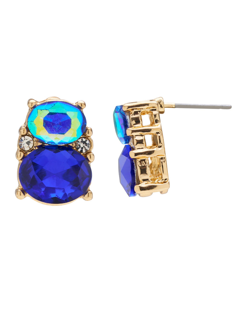 In bold cobalt, the Pastille Stud Earrings from Amelie are perfect for adding gorgeous colour to any outfit. These dainty yet eye-catching earrings feature faceted stones in beautiful blue with fine stone accents for a stunning touch of sparkle.