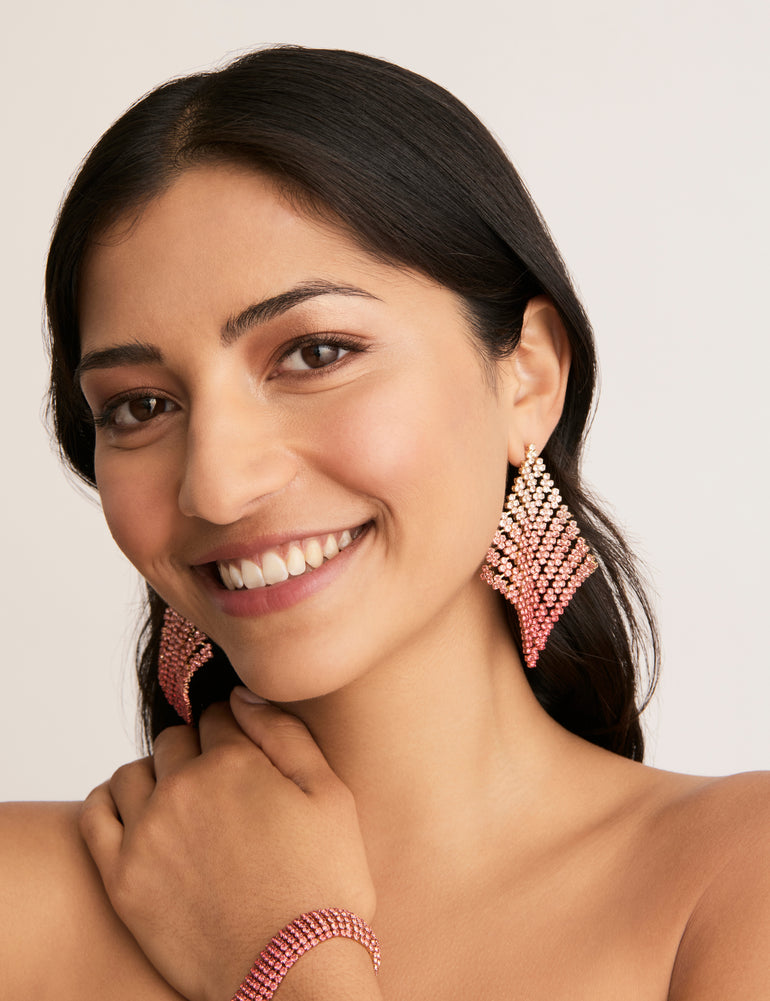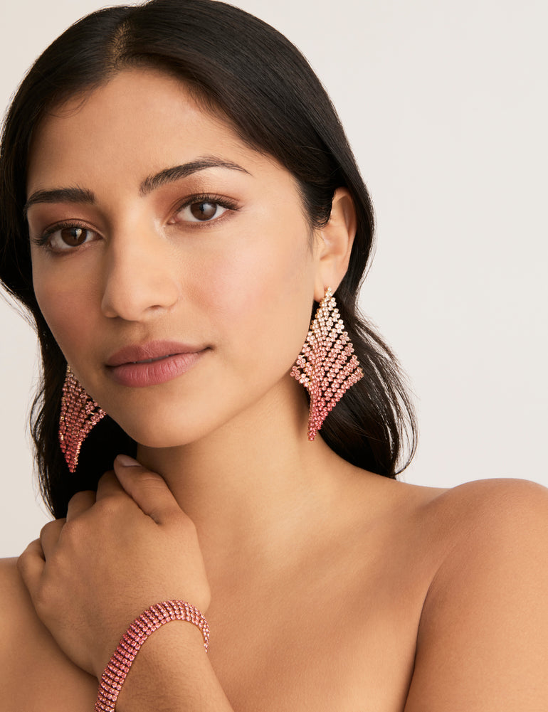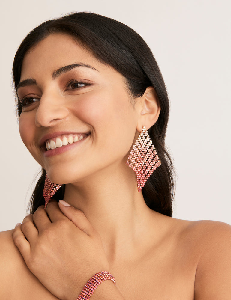 Capture statement modern style with the gorgeous Ombre Kite Earrings. These bold, beautiful earrings are perfect for elevating your day time style, or adding a striking finish to evening looks and formal wear, with elegantly draped drops in an ombre of pretty pink tones, perfect for adding colour and sparkle to any outfit!