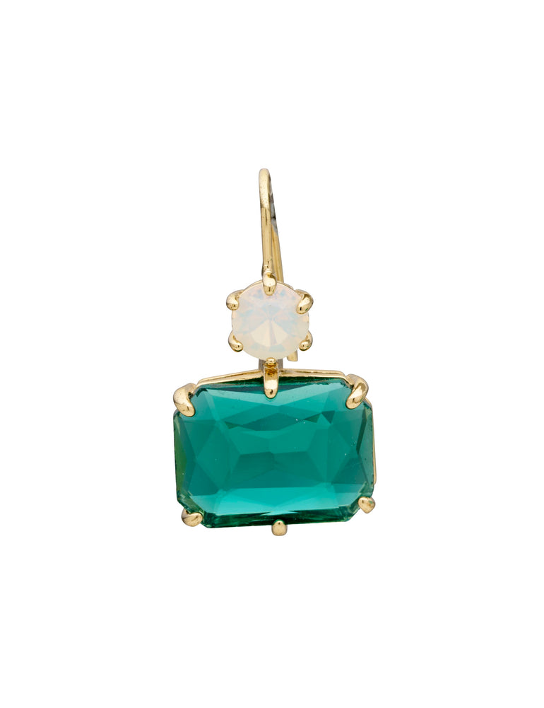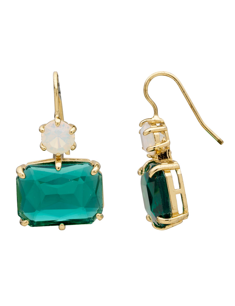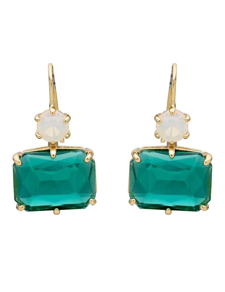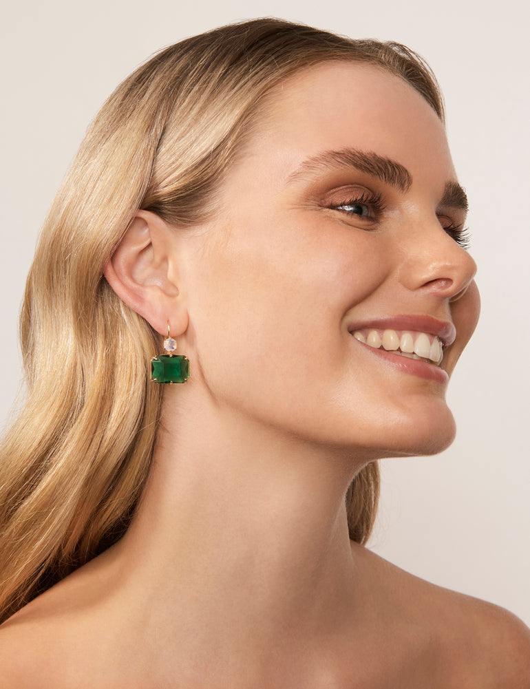 Add a pop of colour to your look with the gorgeous Vista Stone Earrings from Amelie. These elegant earrings feature faceted rectangular green stones and sparkling white stone accents in a gold-coloured setting, bringing a touch of chic, on-trend style to day and evening outfits.