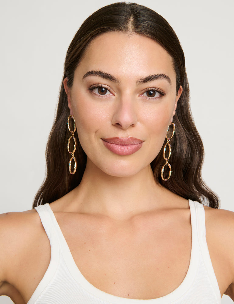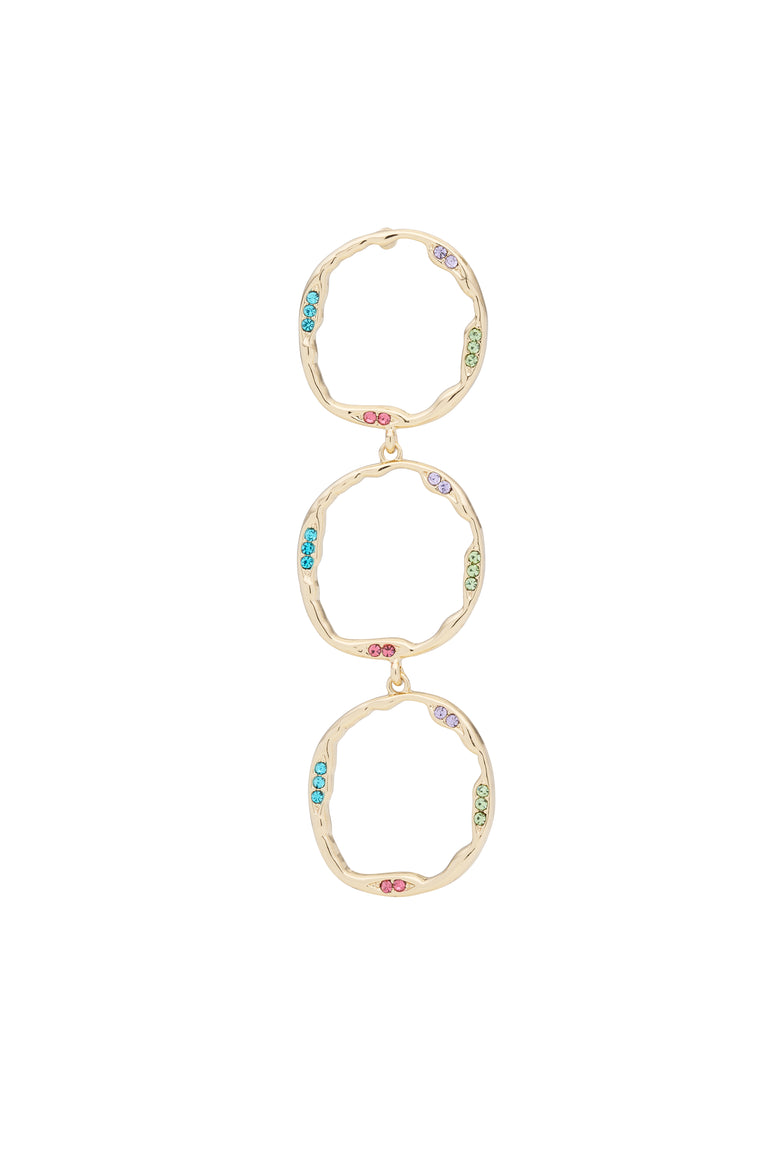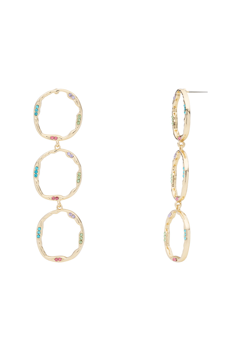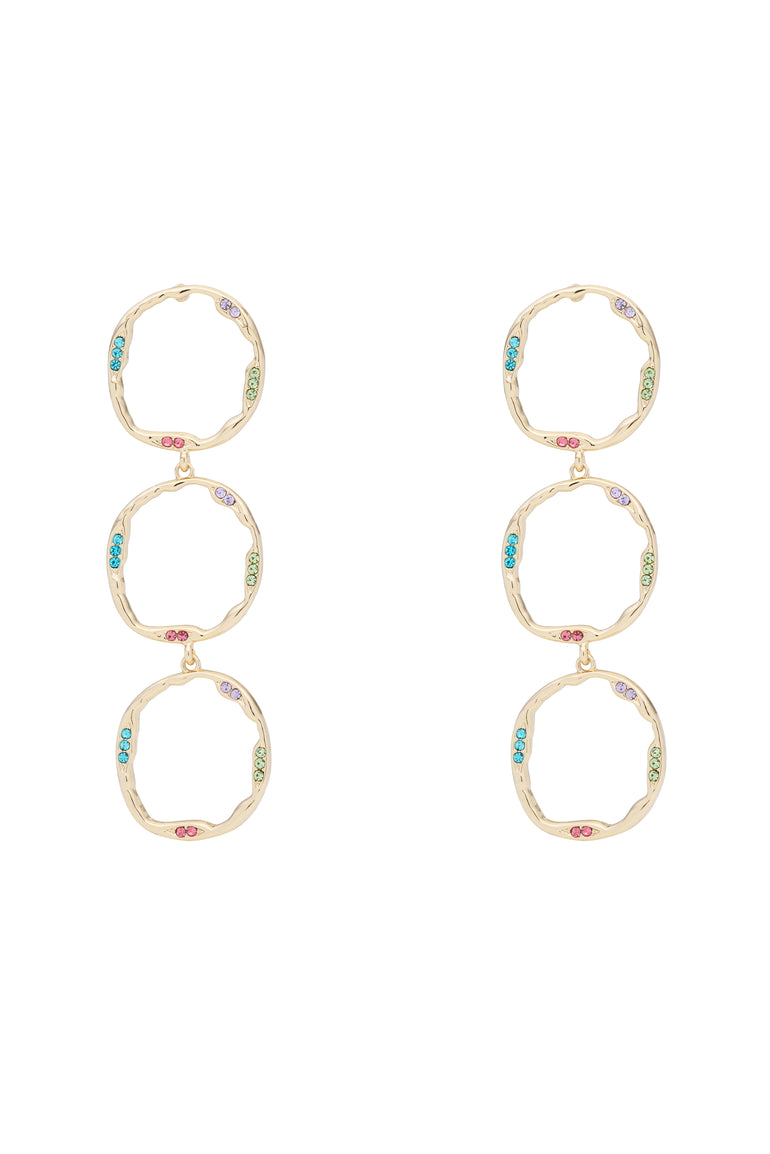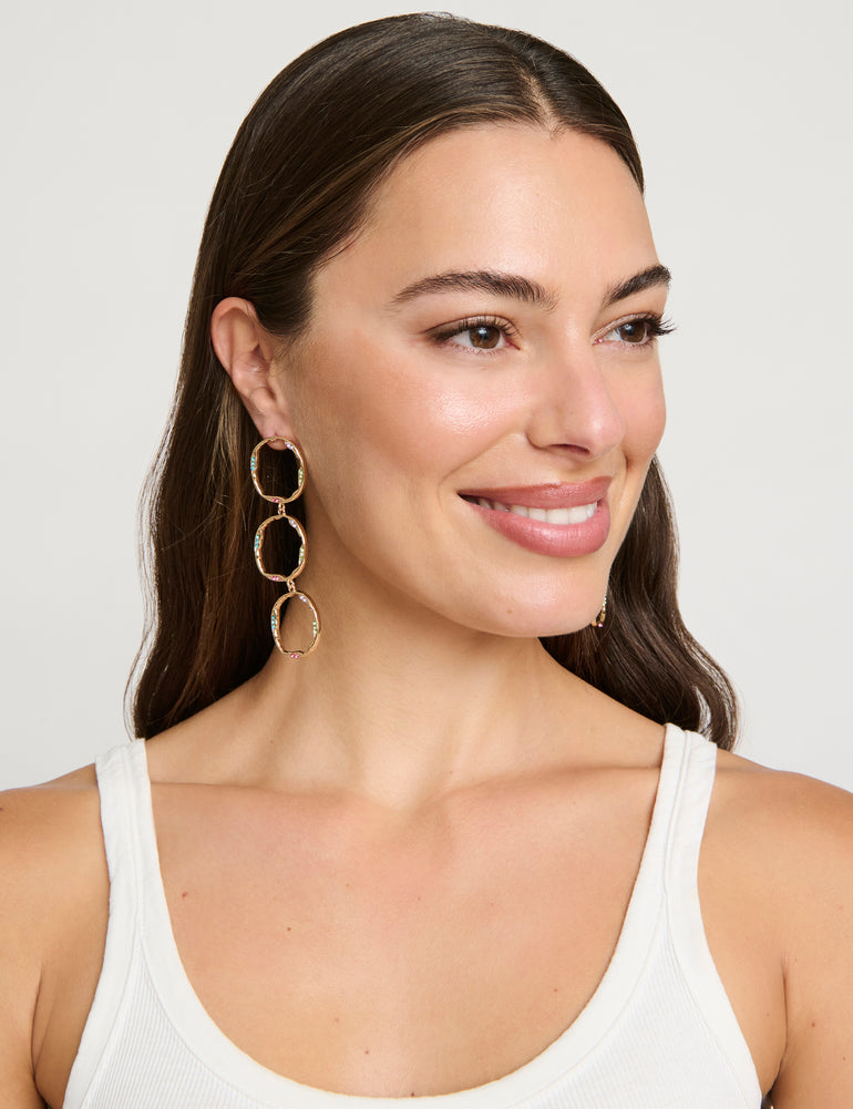 Make a statement with these Organic Open Circle Earrings. Featuring three cascading, organic shape open circles with micro crystal details. These statement earrings are light weight and can easily complement both casual and dressy outfits.