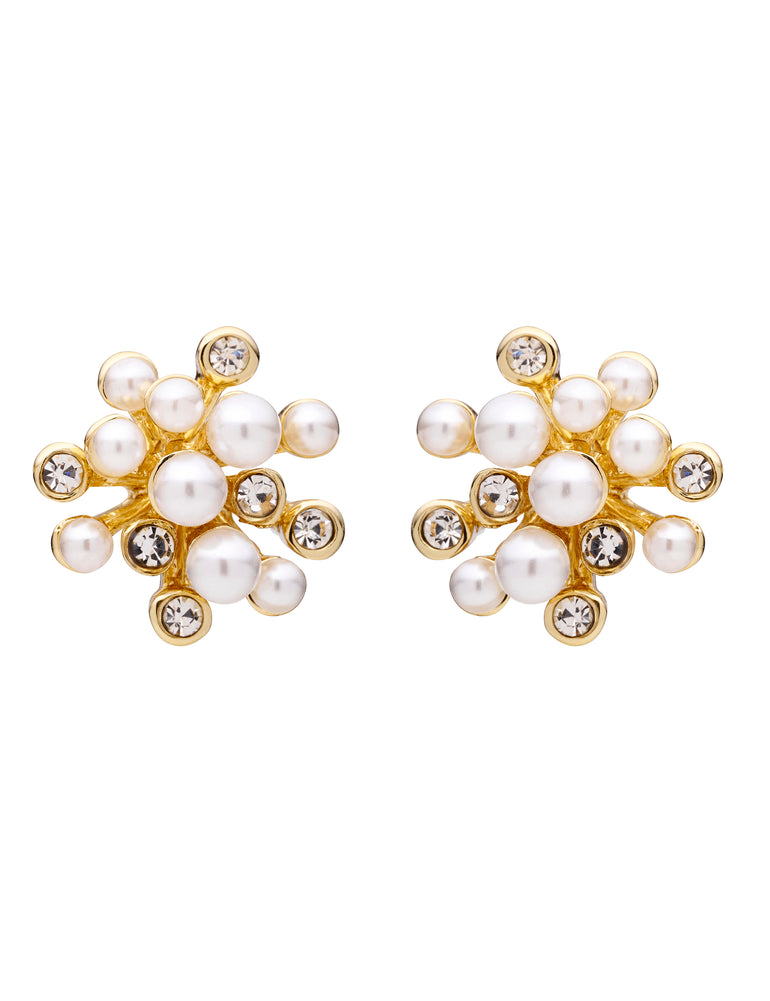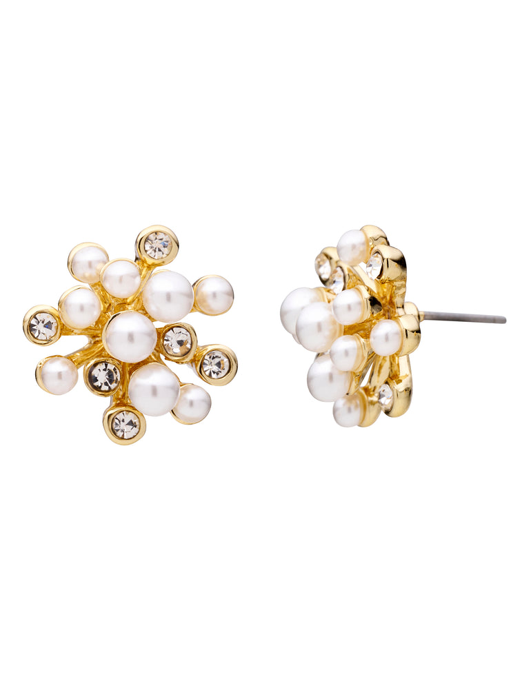 A modern take on a pearl and crystal earring, the Pearl Cluster Stud Earrings feature a cluster of radiating pearls and crystals. Perfect for dressing up an occasion, or to add flair to an every day outfit.