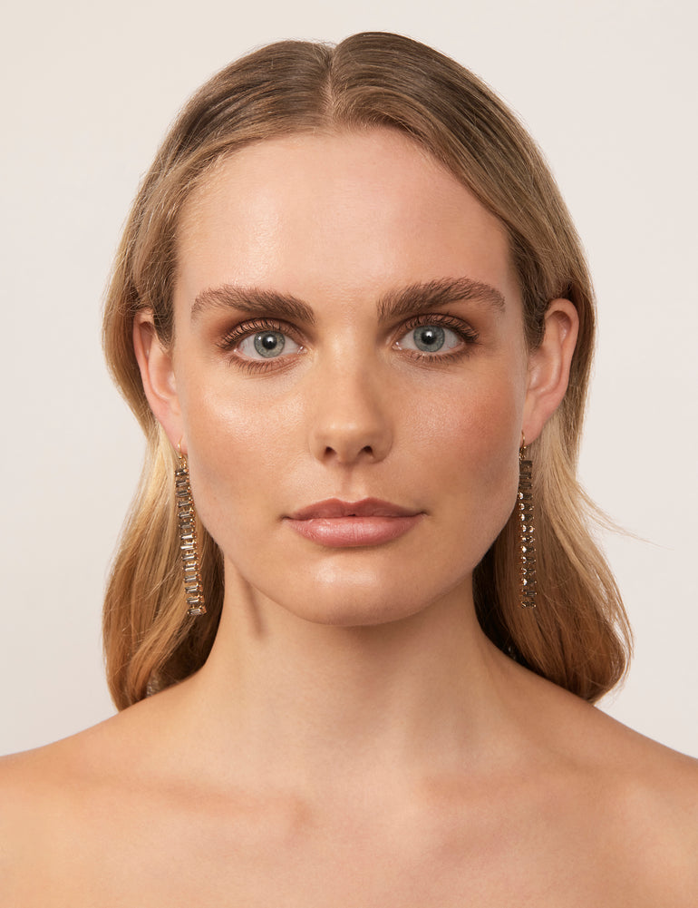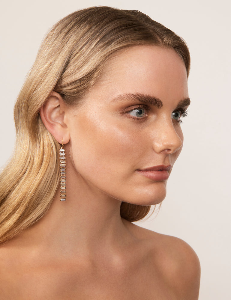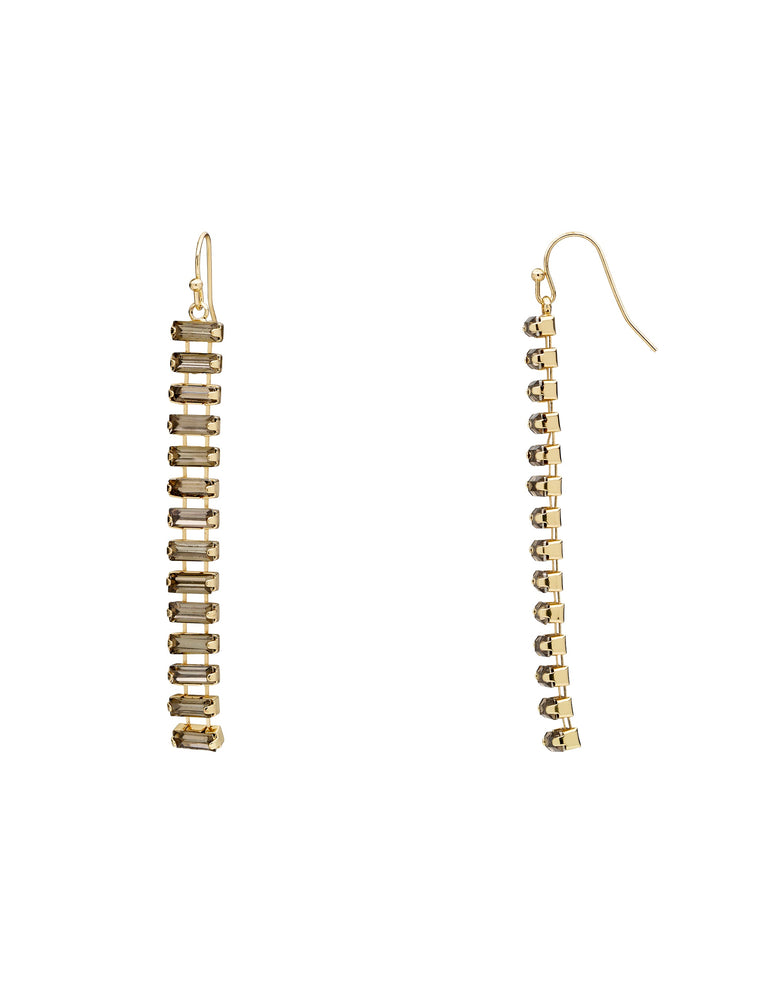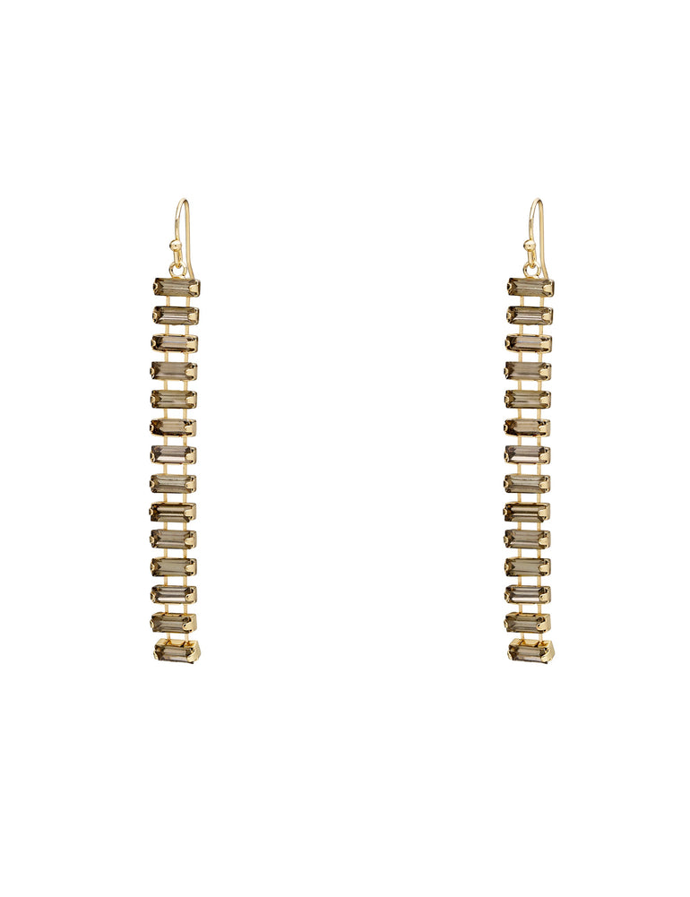 In chic smoky tones with gold-coloured plating for gorgeous shine, the Ladder Drop Earring from Amelie are an elegant addition to any ensemble. Perfect for pairing with dinner-date dresses or evening outfits, these earrings feature a fine cascade of faceted stones, giving any look a sophisticated, sparkling finish.