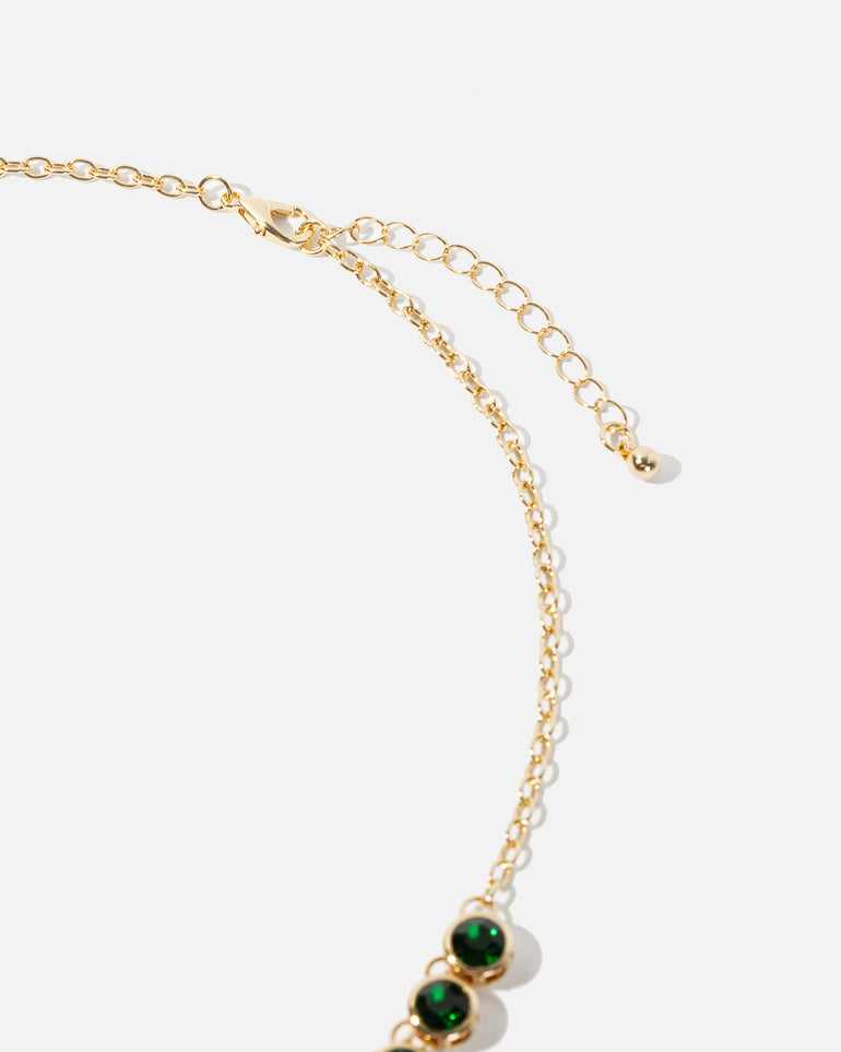The Bezel Crystal Necklace features a series of round, bezel set gemstones in seasonal colour. Perfect for dressing up an occasion, or to add flair to an every day outfit.