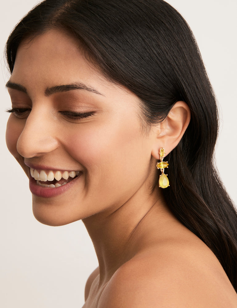 Add a gorgeous pop of colour to your look with the Colour Group Earrings from Amelie. With elegant yellow faceted stones, these beautiful earrings are a perfect finishing touch for date night looks, party dresses or evening ensembles.