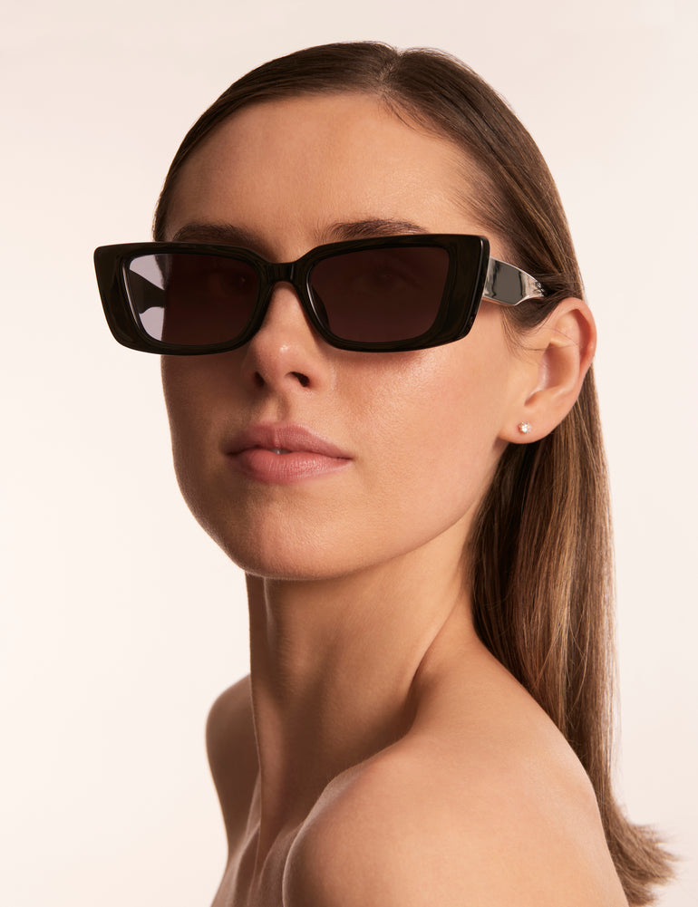 Make a stylish statement with the beautiful Luna Sunglasses from Amelie. These simple yet striking sunnies features a slim rectangular frame with bold lines in classic black. Pair them with your favourite looks for a chic finishing touch all year round.