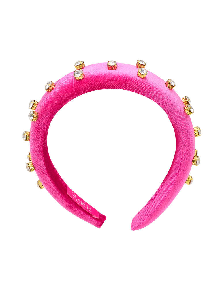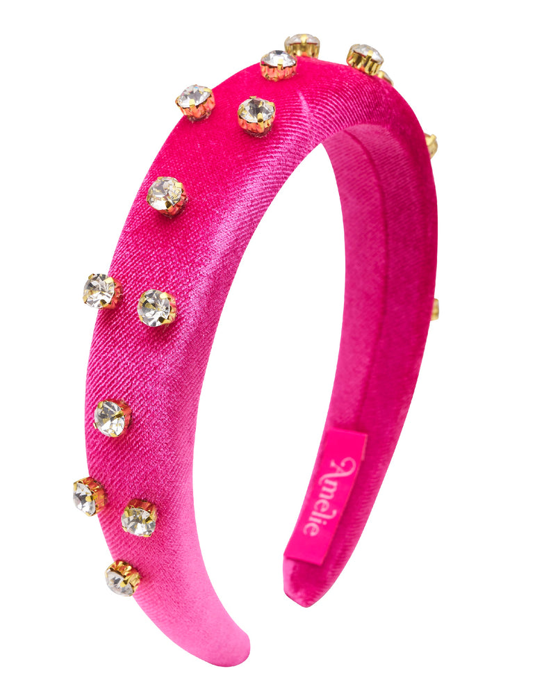 The stunning Scattered Stone Padded Velvet Headband from Amelie is a beautiful finishing touch for your favourite looks. This elegant padded headband features a soft velvet-like finish in vibrant pink, with sparkling faceted stones in gold-coloured settings, perfect for parties and special events or for bringing a gorgeous finish to your everyday style.