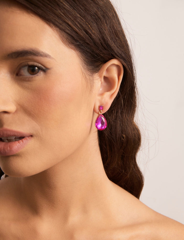 Add the perfect pop of colour to your look with the simple yet stunning Teardrop and Square Colour Earrings. These beautiful earrings feature teardrop stones in a pretty rose-pink hue with fine square stone accents, perfect for dressing up day wear or pairing with evening looks.